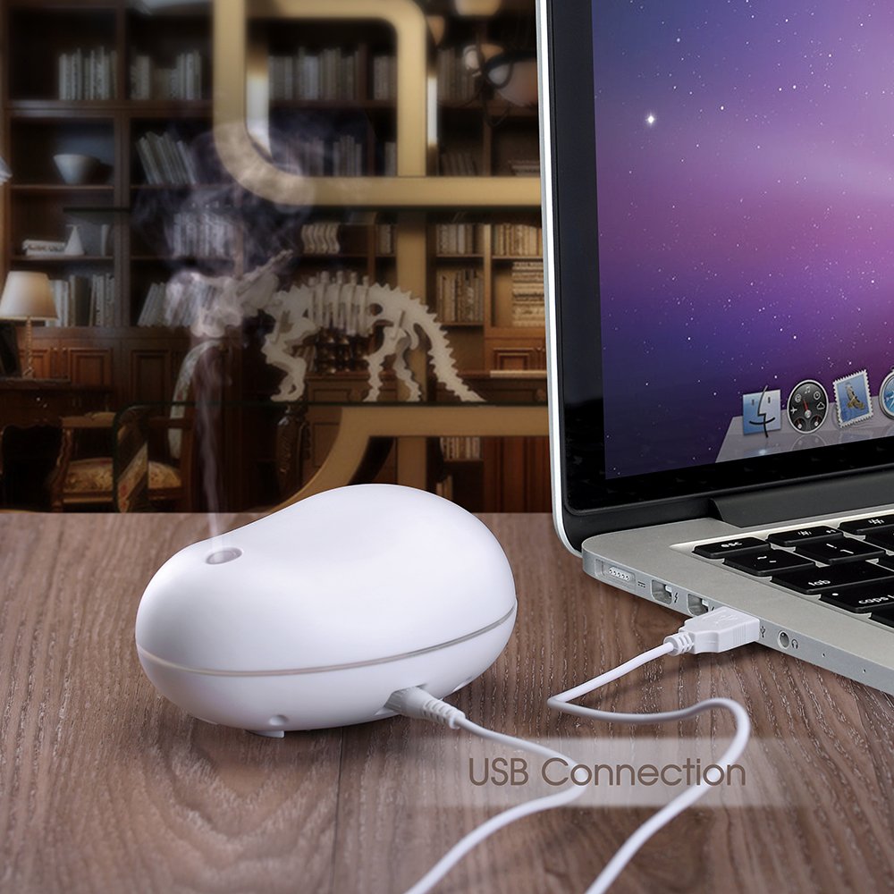 With unique bean design, the ultra mini aroma diffuser works on a USB port so you can power it by connecting it to the computer, plug or even a power bank. With its small size, it is easy to take with you wherever you go, providing you a refreshing air and romantic atmosphere with soothing light.