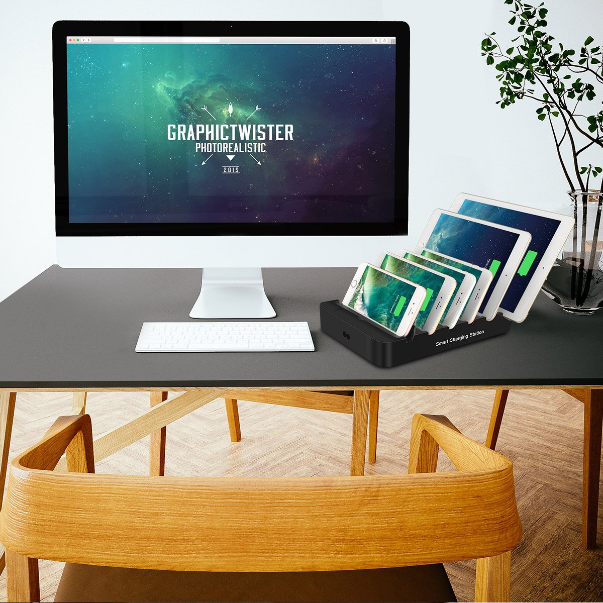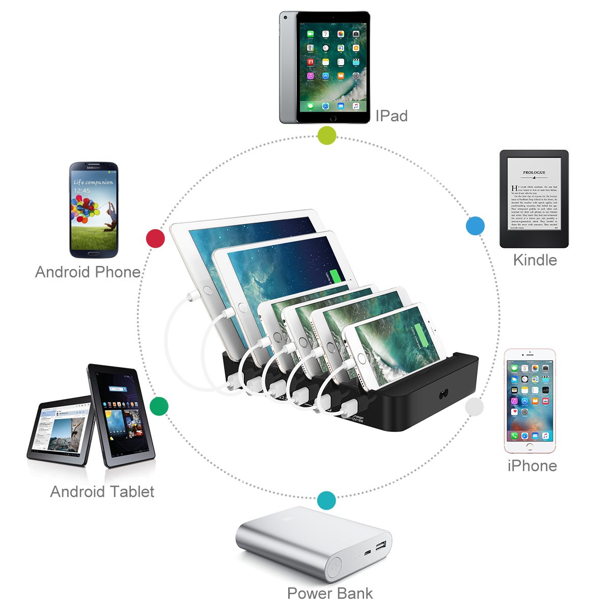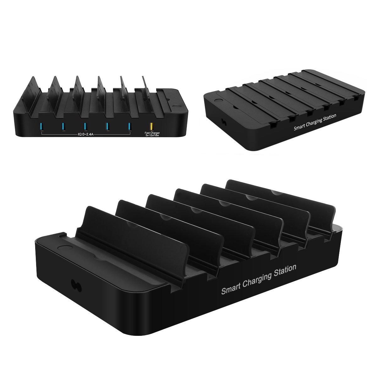 【Quick Charging】 5 port 5V 2.4A output and 1 port FC3.0*1 5V-10A(MAX) , 60W maximum total ports output allows you to charge 6 devices simultaneously.Includes superior, 12A MAX power output to quickly fuel up your smartphone or tablet. Charges TWICE as fast as the original factory charger !