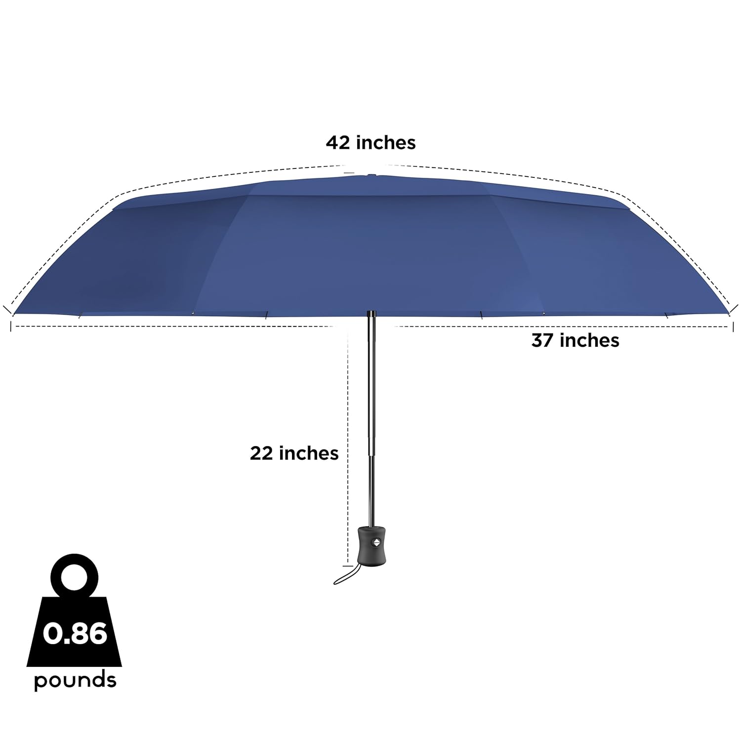 Though small, this travel umbrella packs a lot of power! Strong winds are no match. Its 42 inch DOUBLE VENTED CANOPY lets air slip in and out so you won't get blown out. It's almost unbreakable. We tested it in one of the highest wind tunnels in the world for skydivers and it didn't break or fold up even at 46mph.