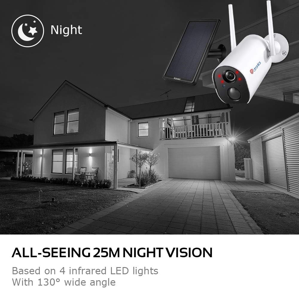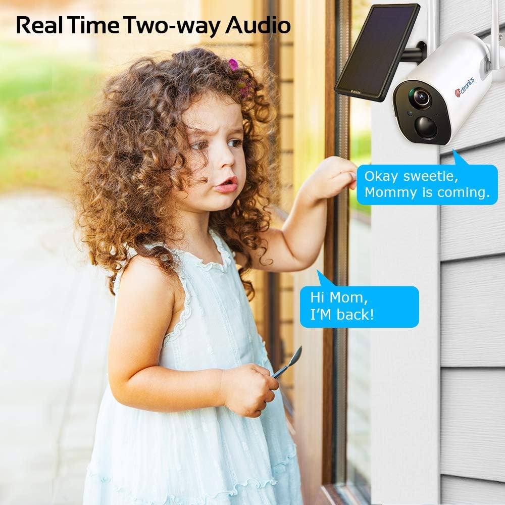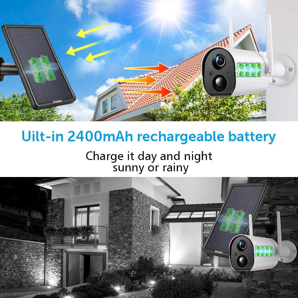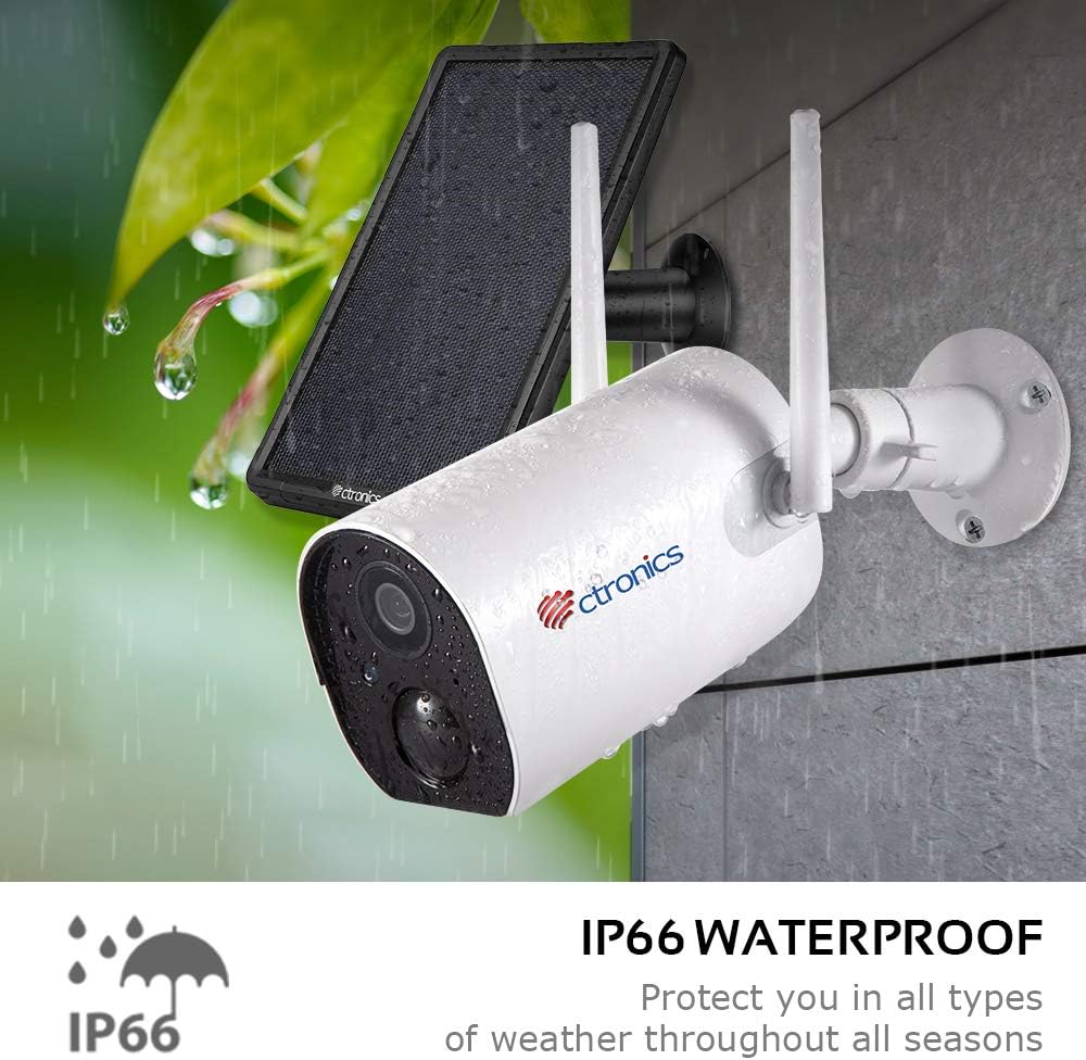 [10400mAh Rechargeable Battery Camera & 2400mAh solar panel] The ctronics new rechargeable security outdoor camera comes with 10400mA built-in batteries, last for 4 weeks continuously use or 12 weeks on standby. this outdoor security camera allows you don’t charge frequently and can be charged with USB cable or optional solar panel. Permanent power supply is guaranteed.