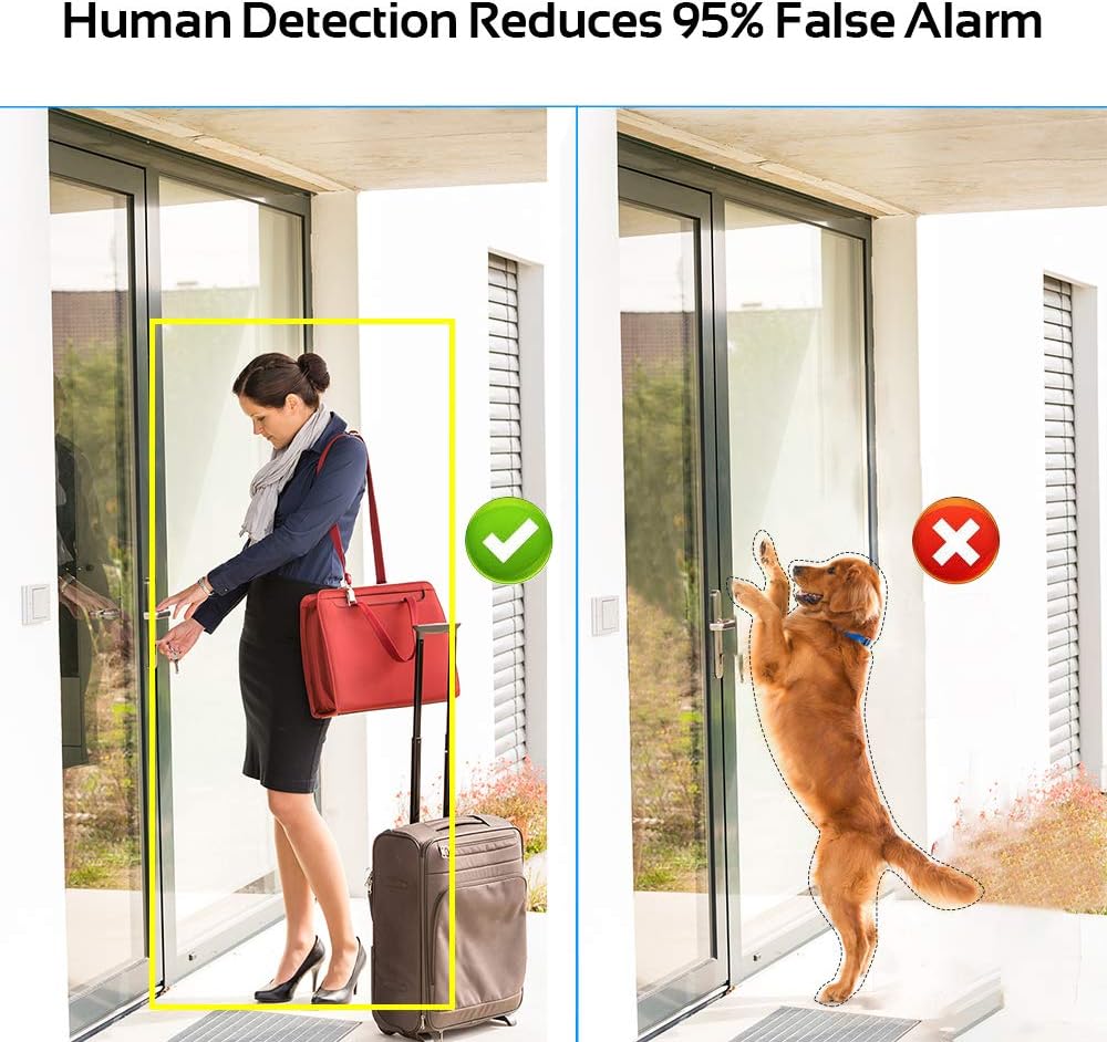 [Two-way Audio & PIR Human Detection] With built-in microphone and speakers allow you to better communicate with your family anytime, anywhere. When humanoid detection function is turned on, and the humanoid contour in the picture is analyzed. The smartphone will receive the identification of the intruder and push the alarm information in time. If there are any other objects such as insects, rain, wind, it will not alarm.