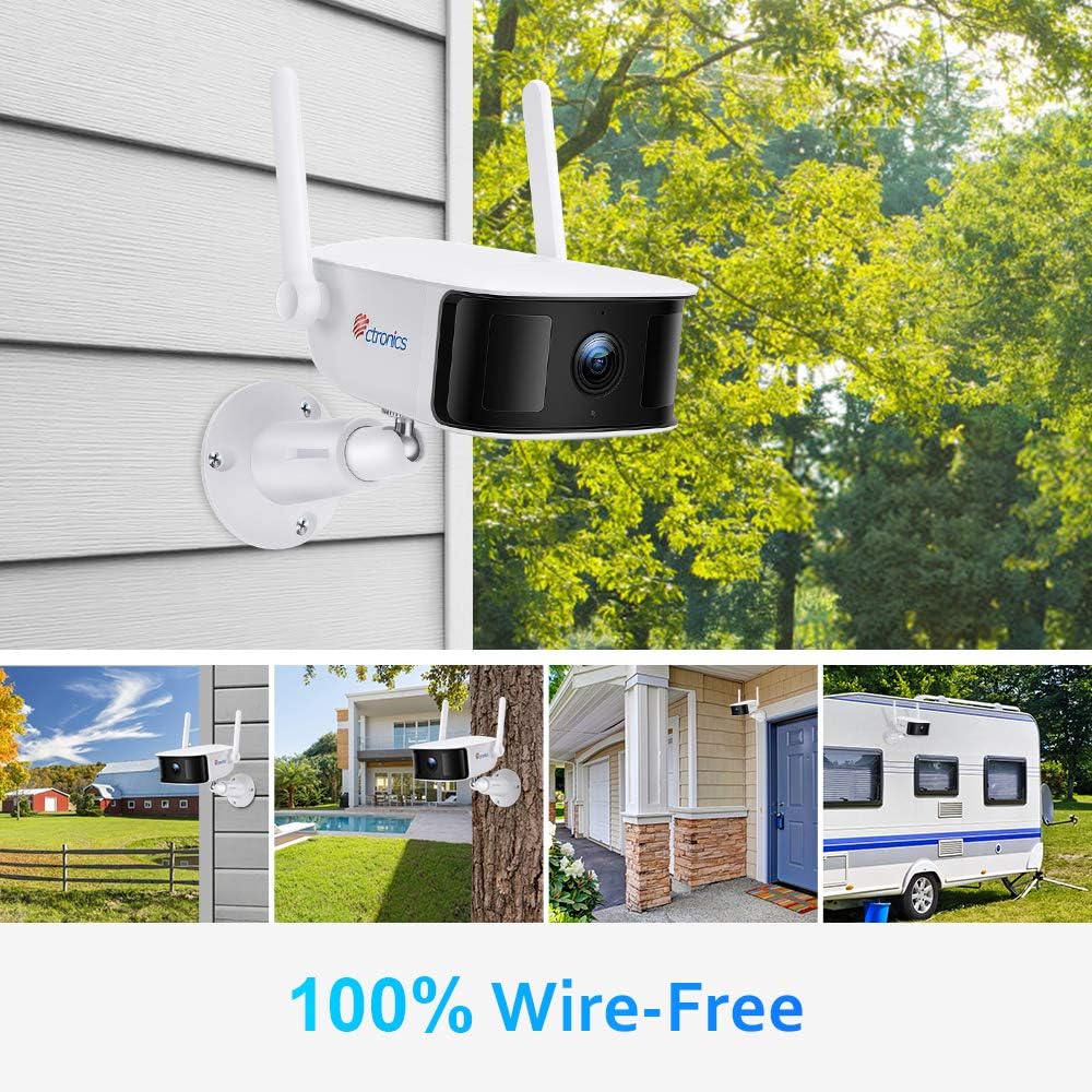 10400mAh Rechargeable Battery & 100% Wireless: This Ctronics wifi security Camera is equipped with built-in 10400mAh batteries, which can be used for four weeks continuously or 12 weeks on standby. The 100% wireless outdoor camera frees you from cables and hassle and allows you to remove the outdoor security camera at any time.