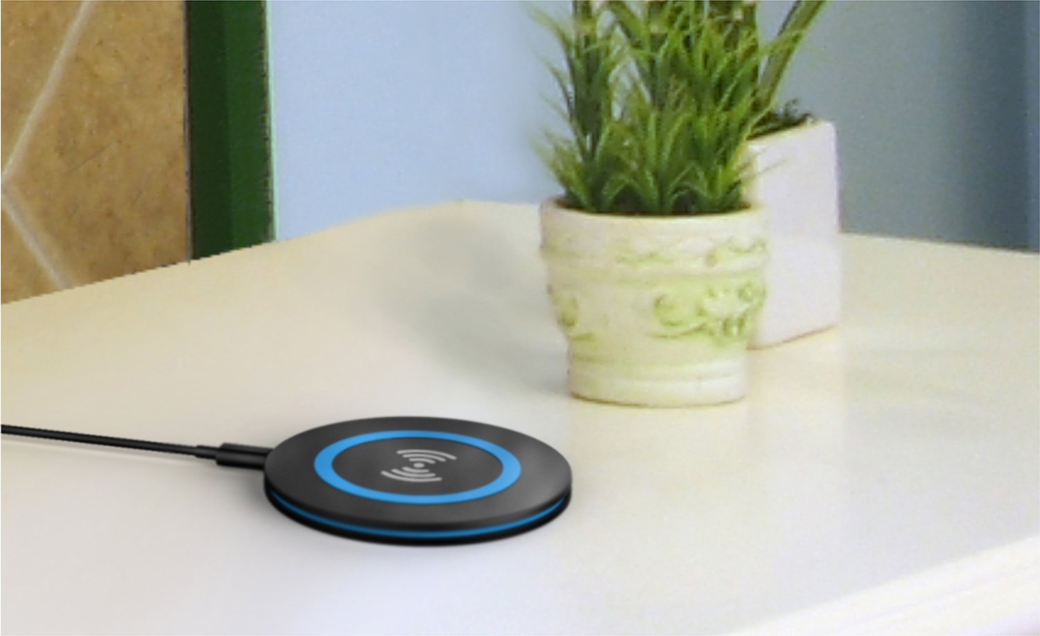 It's perfect for having at the desk or charging the phone at night. This wireless charger is easy to set up and use. You simply plug into a USB plug in and place your compatible phone on the charger. You only have to set up the initial plug in and after that you do not have to deal with any plug in.